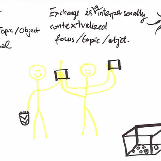 1) Draw a definition of exchange (a symbol / object / action etc.) using the black marker.