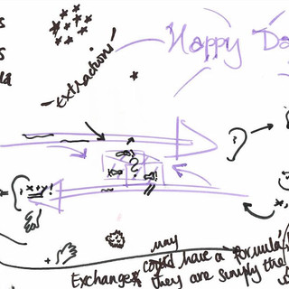 2) Pass piece of paper on to next person. Now take a different coloured pen. Redefine the exchange or change the original symbol in any way (adding / editing / cutting etc.).